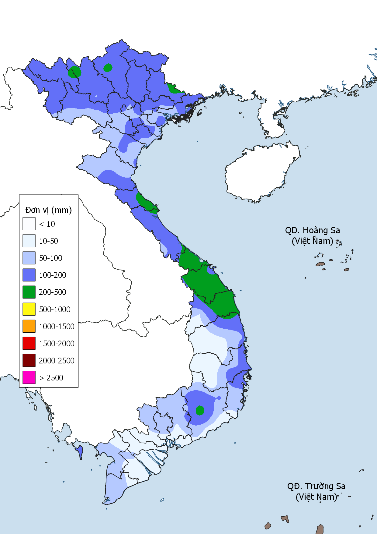 • Tây Nguyên và Nam Bộ: Tây Nguyên ghi nhận 2 đợt mưa lớn (6–7/11, 16–18/11), nhiều nơi mưa rất to trên 100mm/ngày; tổng lượng mưa phổ biến 250–500mm. Nam Bộ mưa rải rác, một số điểm mưa lớn trên 100mm; tổng lượng mưa phổ biến 150–300mm, có nơi cao hơn.